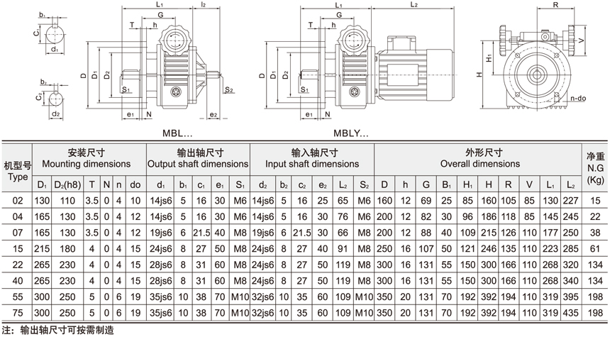 注:無級變速機的輸出軸尺寸可按客戶需求定制